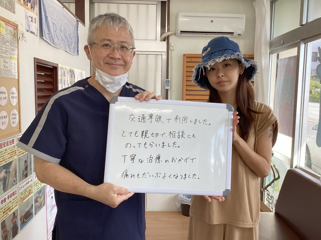 沖縄県浦添市在住:A.O様【交通事故治療・追突事故】 2025.09.07 交通事故治療 症例 交通事故で利用しました。とても親切で相談にものってもらいました。丁寧な治療のおかげで痛みもだいぶよくなりました。 投稿ナビゲーション <> 一覧へ戻る