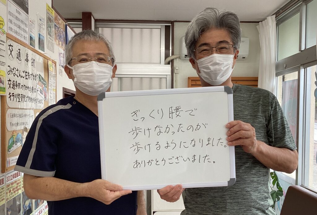 患者様の声 ぎっくり腰で歩けなかったが歩けいるようになりました。 ありがとうございました。😊